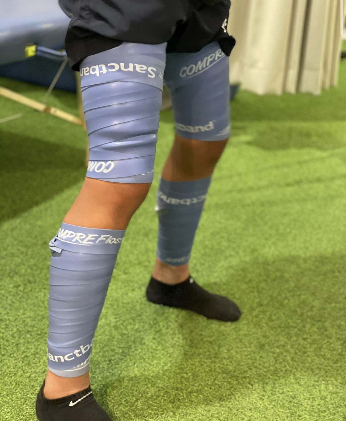 バンドの圧力と筋肉動作で血流や体内水分をせきとめた後、バンドを外して一気に滞留を組織へ流しこむことで浮腫、疲労や可動域の改善をすることができます✨