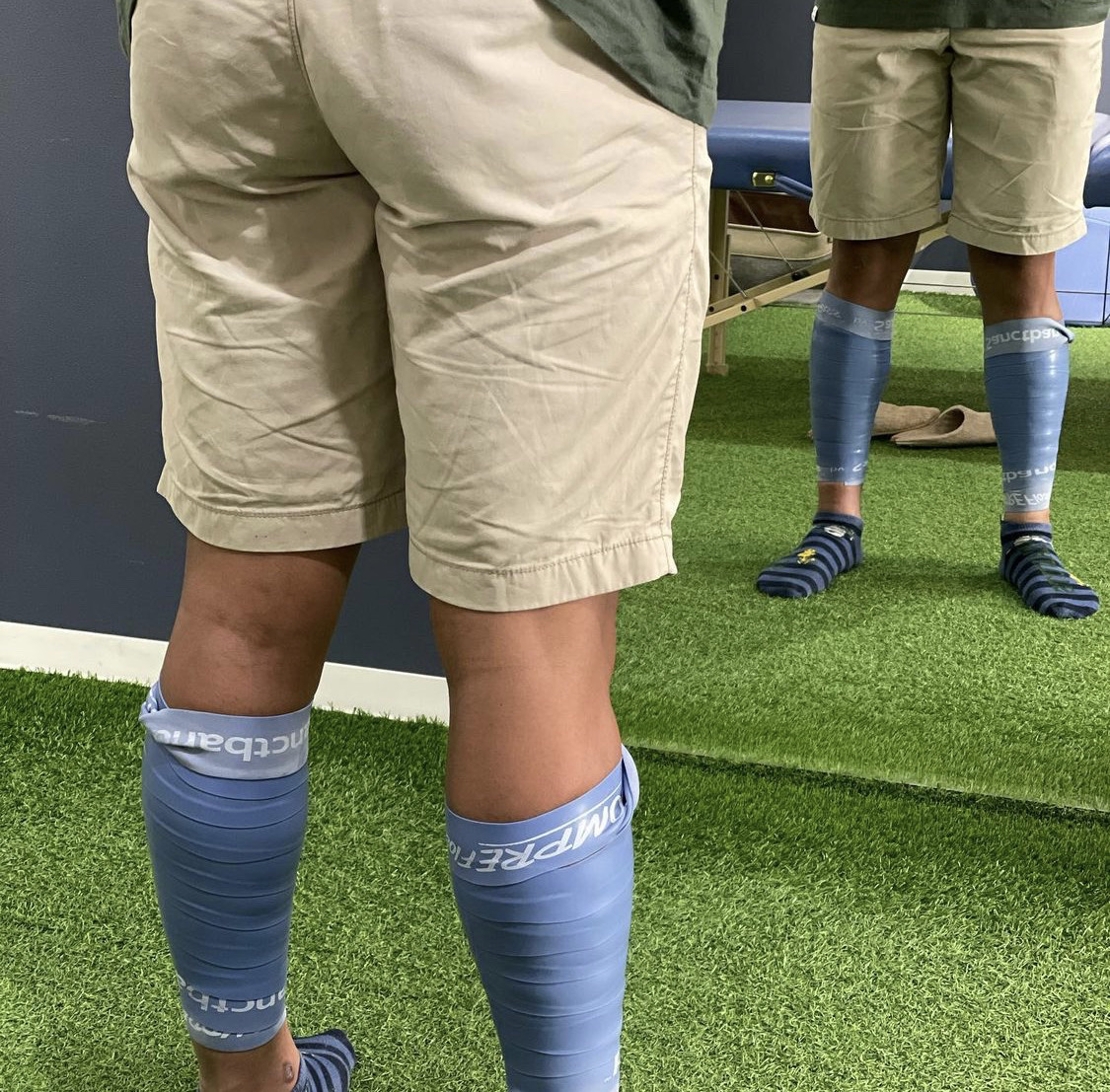 バンドの圧力と筋肉動作で血流や体内水分をせきとめた後、バンドを外して一気に滞留を組織へ流しこむことで浮腫、疲労や可動域の改善をすることができます✨