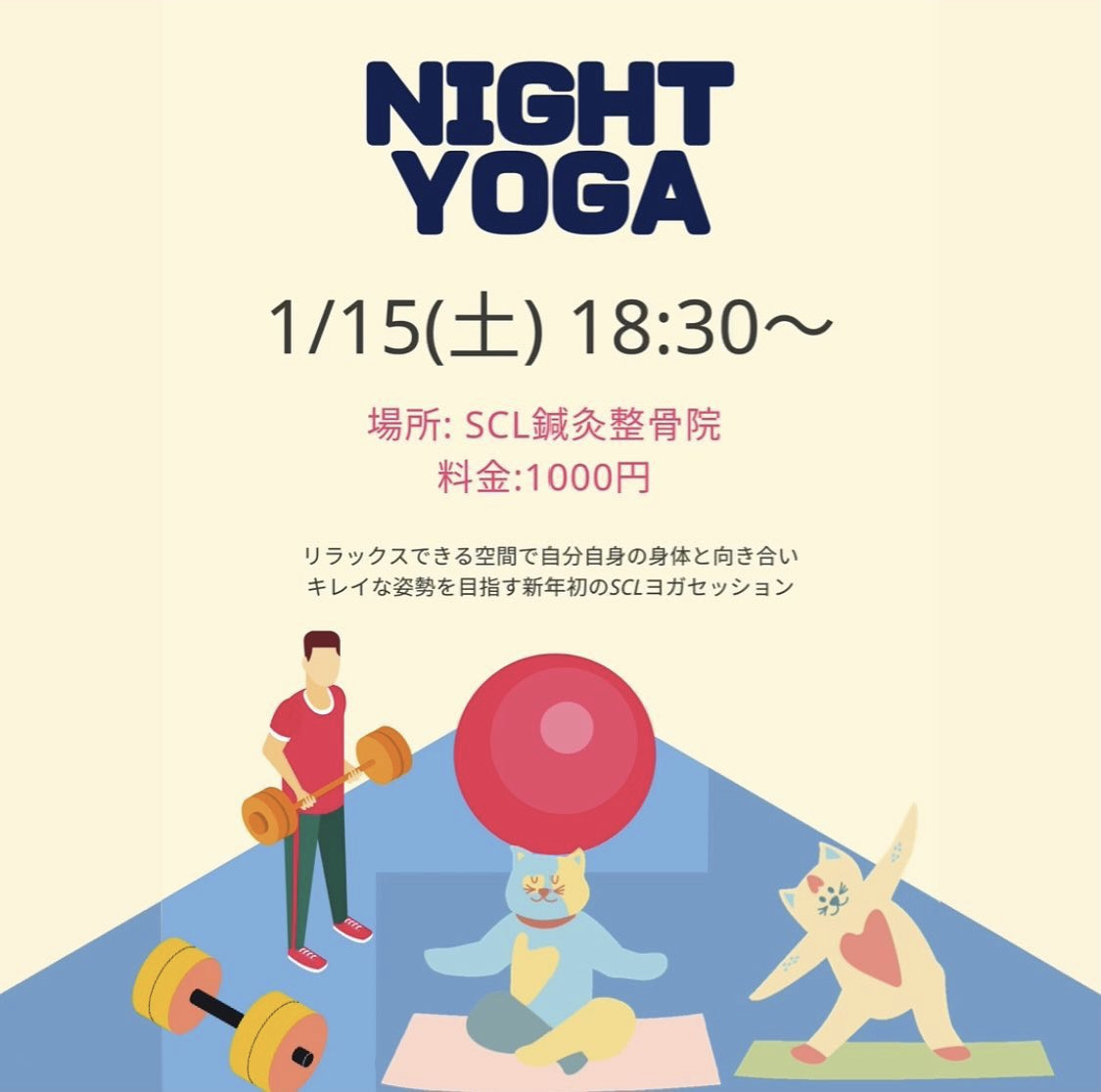 新年一発目のSCLヨガを開催いたします